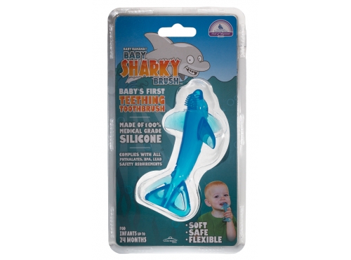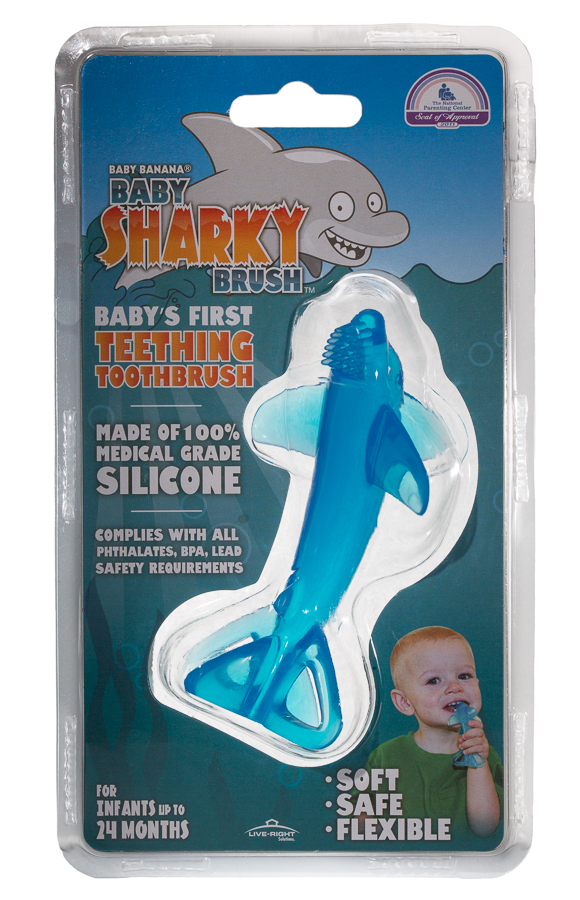 Bàn chải đánh răng Baby Banana cá mập được uốn cong và được làm bằng chất silicone rắn 100% y khoa. Bàn chải này bao gồm trẻ sơ sinh và trẻ mới biết đi tập đi bộ bàn chải đánh răng trong một. Bàn chải đánh răng Baby Banana cá mập có thể được trẻ sơ sinh dùng đến 24 tháng. 100% silicone rắn cấp y tế làm cho bàn chải mềm, an toàn và linh hoạt. Vòng mở trong vây đuôi là hoàn hảo để gắn một dây đeo binky (không bao gồm). Dễ dàng nắm bắt ở nhiều nơi để dễ dàng đánh răng. Nhẹ nhàng xoa răng và lợi. Phát triển các thói quen vệ sinh răng miệng tốt.