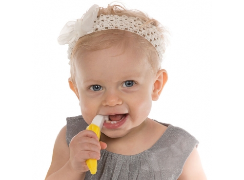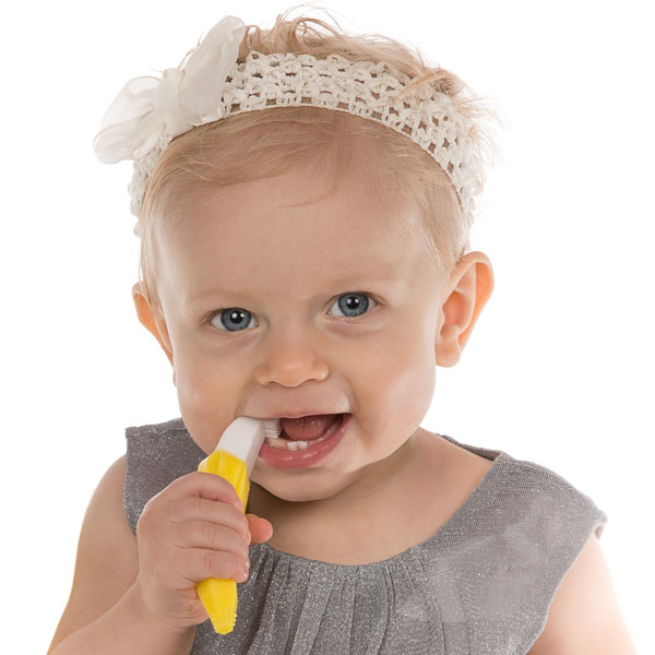 Bàn chải đánh răng dành cho trẻ mới biết đi được thiết kế linh hoạt và uốn cong để trẻ không thể bị thương miệng bằng bàn chải đánh răng cứng bằng nhựa cứng truyền thống. Silicone cấp y tế làm cho bàn chải này bền và an toàn, trong khi các lông nhỏ xoa bóp răng và lợi.