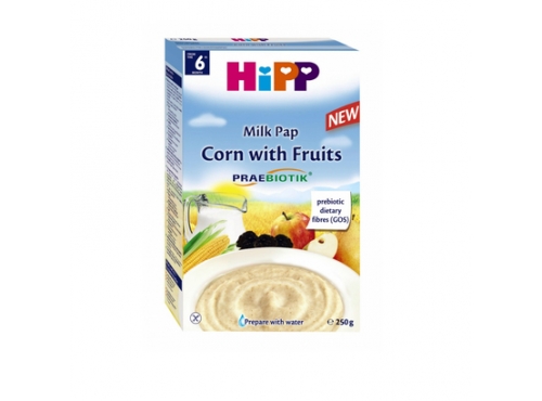 Pha 20g (khoảng 3-4 thìa) bột ngũ cốc bắp non với 180-200ml nước ấm, khuấy đều, để bột nở trong vòng 1 phút cho bột sánh đều, tiếp đó cho 6 muỗng gạt ngang dinh dưỡng công thức sữa HiPP Combiotic (theo lứa tuổi) trộn với bột đã pha. Khuấy đều cho đến khi sữa tan hết, ánh màu kem sữa đặc trưng là có thể cho bé thưởng thức