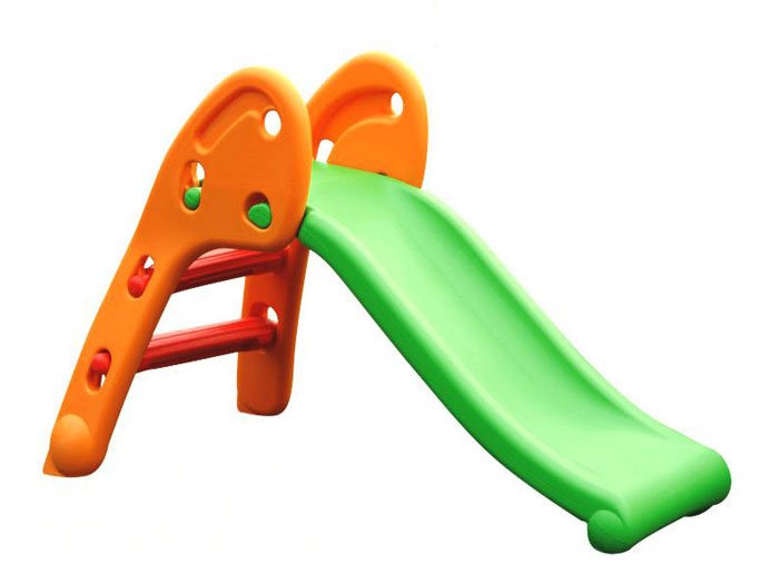 Cầu trượt với màu xanh và cam bắt mắt giúp phát triển thị giác, xúc giác cho bé và khả năng vận động của bé.
