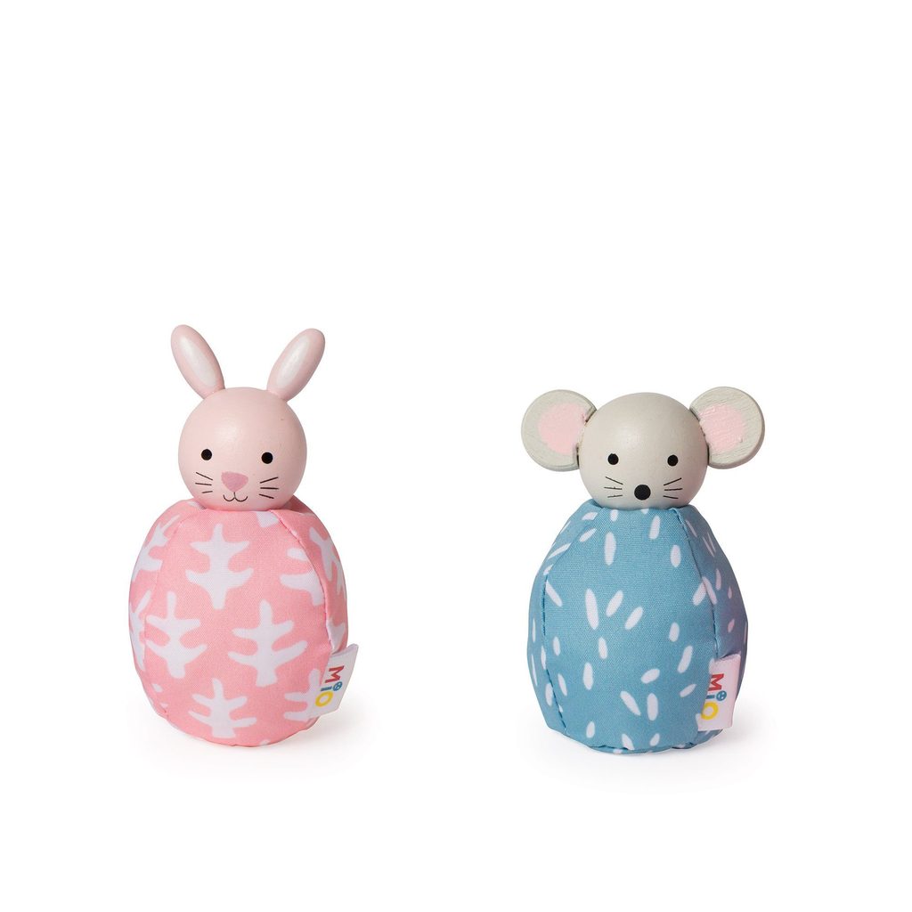 Mio Animal Set bao gồm một con chuột và thỏ. Bộ Mio và Động vật có đầu bằng gỗ được vẽ bằng tay và thân hình beanbag mềm - hoàn hảo cho đôi bàn tay nhỏ và chơi khéo léo.