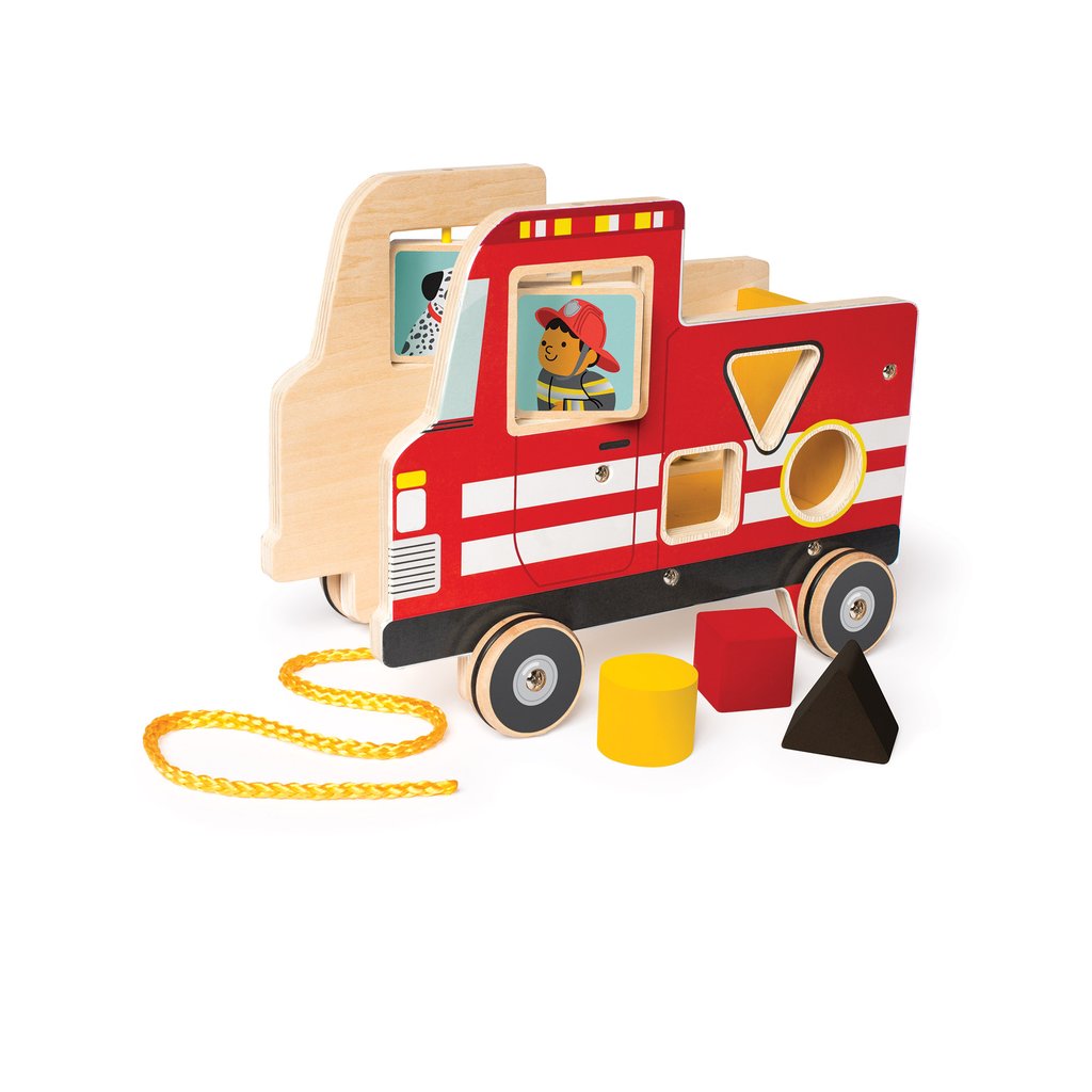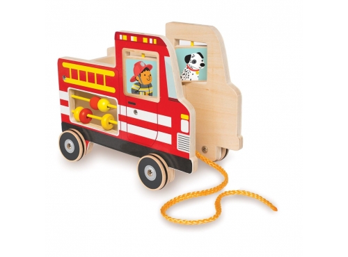 Kết hợp trung tâm hoạt động và đồ chơi kéo này sẽ cho trẻ biết rằng chốt vuông thực sự không thể phù hợp với lỗ tròn đó! Nạp với các yếu tố cho trẻ mới biết đi để khám phá: máy phân loại hình dạng, chạy hạt và quay lửa / chó. Khi đã sẵn sàng đi dạo quanh bàn ăn, nắm dây màu vàng và xem những bánh xe được tỉa cao su lăn vòng tròn nhỏ và tròn này. Thúc đẩy phát triển kỹ năng vận động.